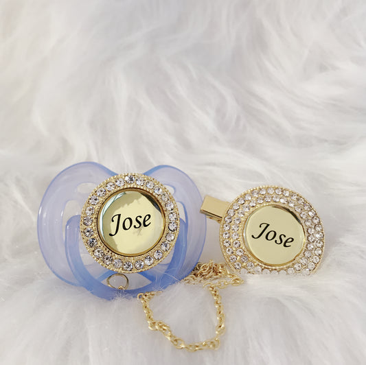 MIYOCAR Bling custom pacifier and clip set gold collection