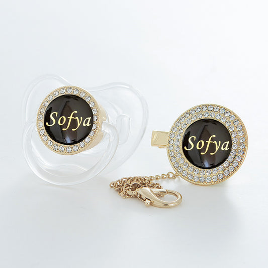 MIYOCAR Luxurious bling Transparent Sparkling Rhinestone Custom baby pacifiers and clips/holder kit with name for boy and girl gift