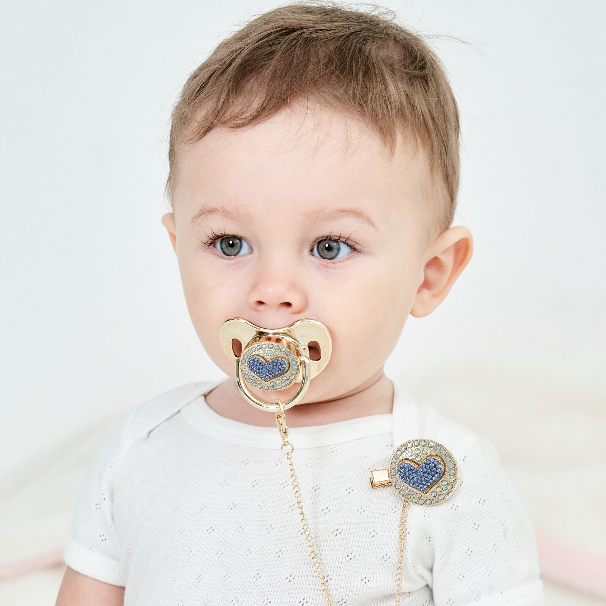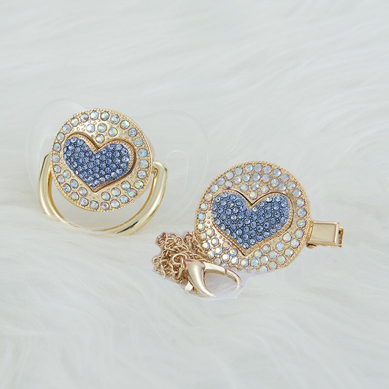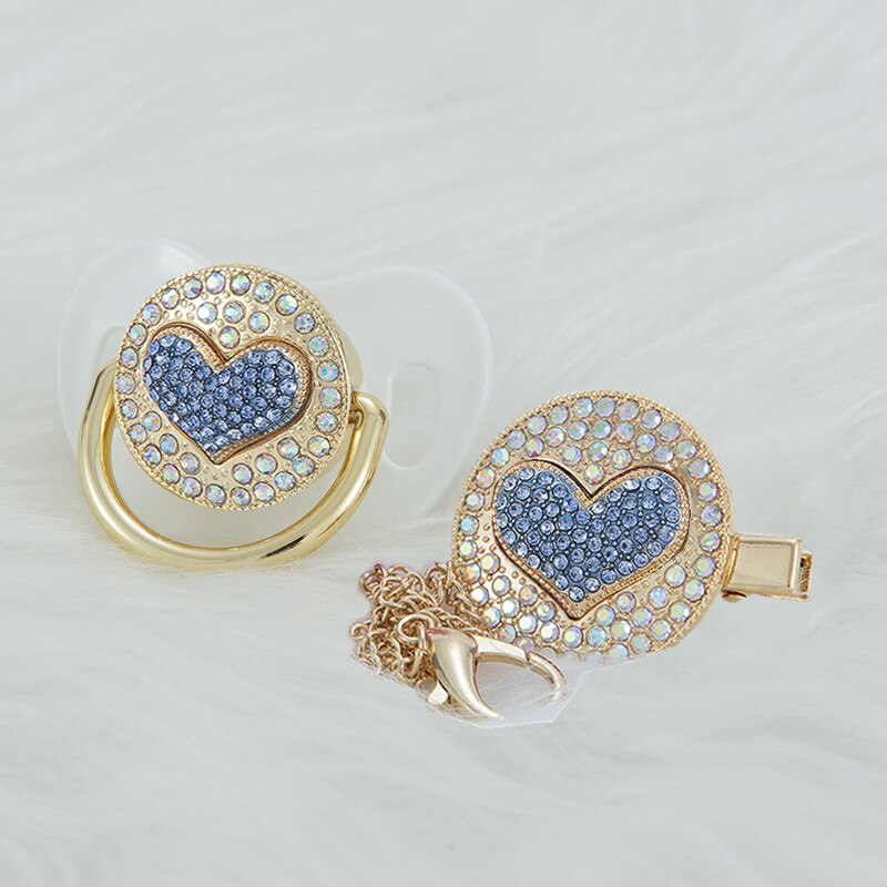 MIYOCAR luxurious bling 3D blue heart pacifier and pacifier clip BPA free unique gift Photography no for daily use