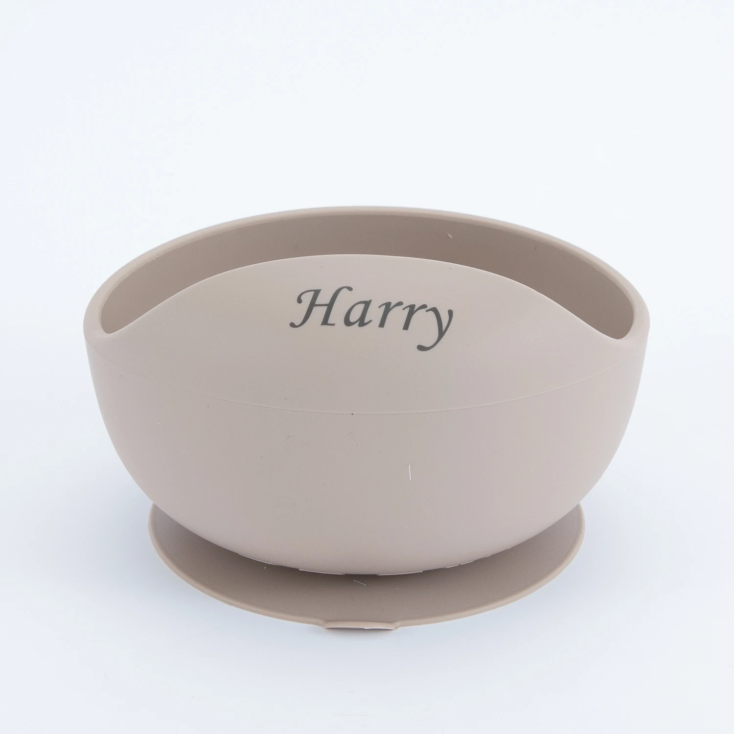 Personalized name Food Grade Baby Feeding Set with Spoon, fork,Silicone Suction Bowls and bib BPA Free - First Stage Self Feed